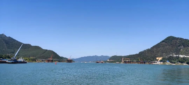 項(xiàng)目公司在航道海事部門(mén)的協(xié)同下進(jìn)行臨時(shí)航標(biāo)的施工,做好涉水施工通航安全保障,并重點(diǎn)關(guān)注鋼便橋及橋墩等部位的施工組織,盡量減少機(jī)械震動(dòng)、重型機(jī)械設(shè)備搬運(yùn)等對(duì)河道岸灘的擾動(dòng)和破壞。